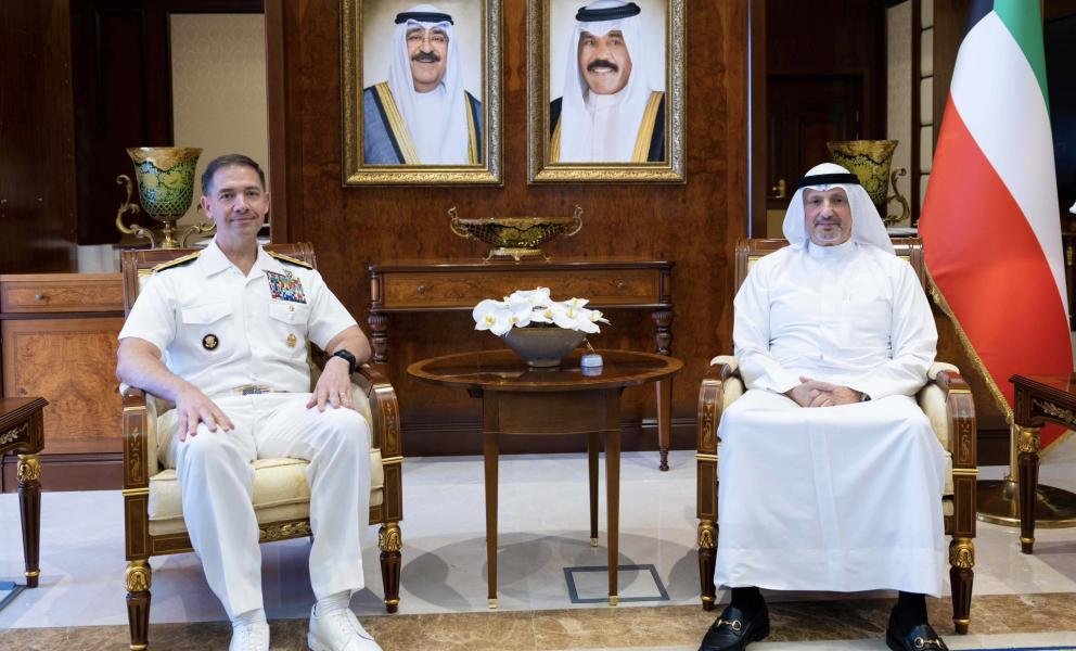 أجرى وزير الخارجية الكويتي الشيخ سالم العبد الله الصباح، اليوم الاثنين، مباحثات مع الأدميرال براد كوبر، قائد القوات البحرية بالقيادة المركزية الأمريكية وقائد الأسطول الخامس، حول التعاون في مجال الأمن البحري.