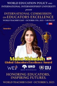مهى شحادة تحصد جائزة التميّز التربوي العالمي 2025 لقيادتها المبتكرة في التعليم. ​