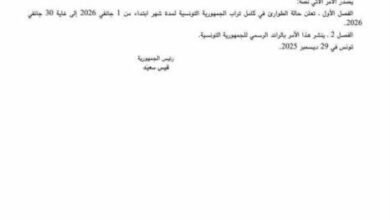 تونس.. الرئيس سعيّد يمدد حالة الطوارئ حتى نهاية يناير 2026