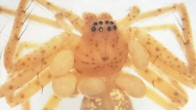 يشكل العث “عقدًا من اللؤلؤ” على عنكبوت من عائلة Sparassidae. الائتمان: ريكاردو باسيني سيلفا قادت ملاحظة صدفة لعنكبوت غير عادي…